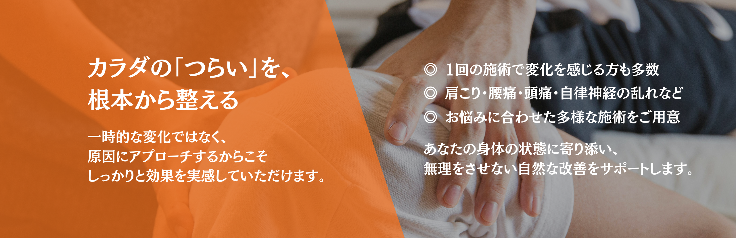 日々の仕事の疲れ、天候から来る体調不良、運動不足による筋力低下、スポーツでの疲労、リラクゼーション、原因がわからないけど調子が悪いなど。